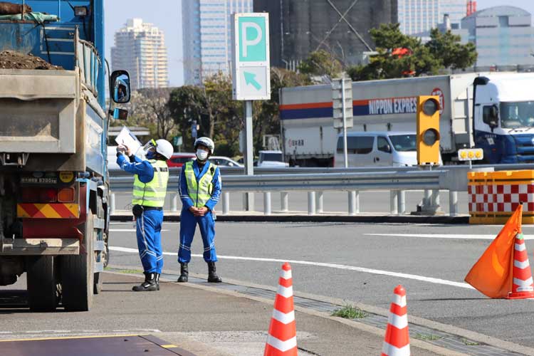 法令違反車両取締等業務 事業内容 TOP 業務内容 法令違反車両取締等業務 車限隊は主要インターで車両制限令違反車両等の状況調査を行い、積載不適当車両には積載方法の是正等の指示・警告を行います。 また車両制限令違反車両には総重量の軽減・徐行・通行の中止等を命じます。危険の芽をいち早く摘み取り高速道路を守る、大切な業務の一つです。 写真で見る法令違反車両取締等業務 01 02 03 04 05 06 07 08 09 10 11 12 交通管理巡回業務 交通管制業務
